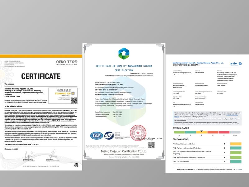 Our factory has obtained BSCI, ISO, and OEKO-TEX® STANDARD 100 certifications, implementing comprehensive and standardized management in both production processes and social responsibility.